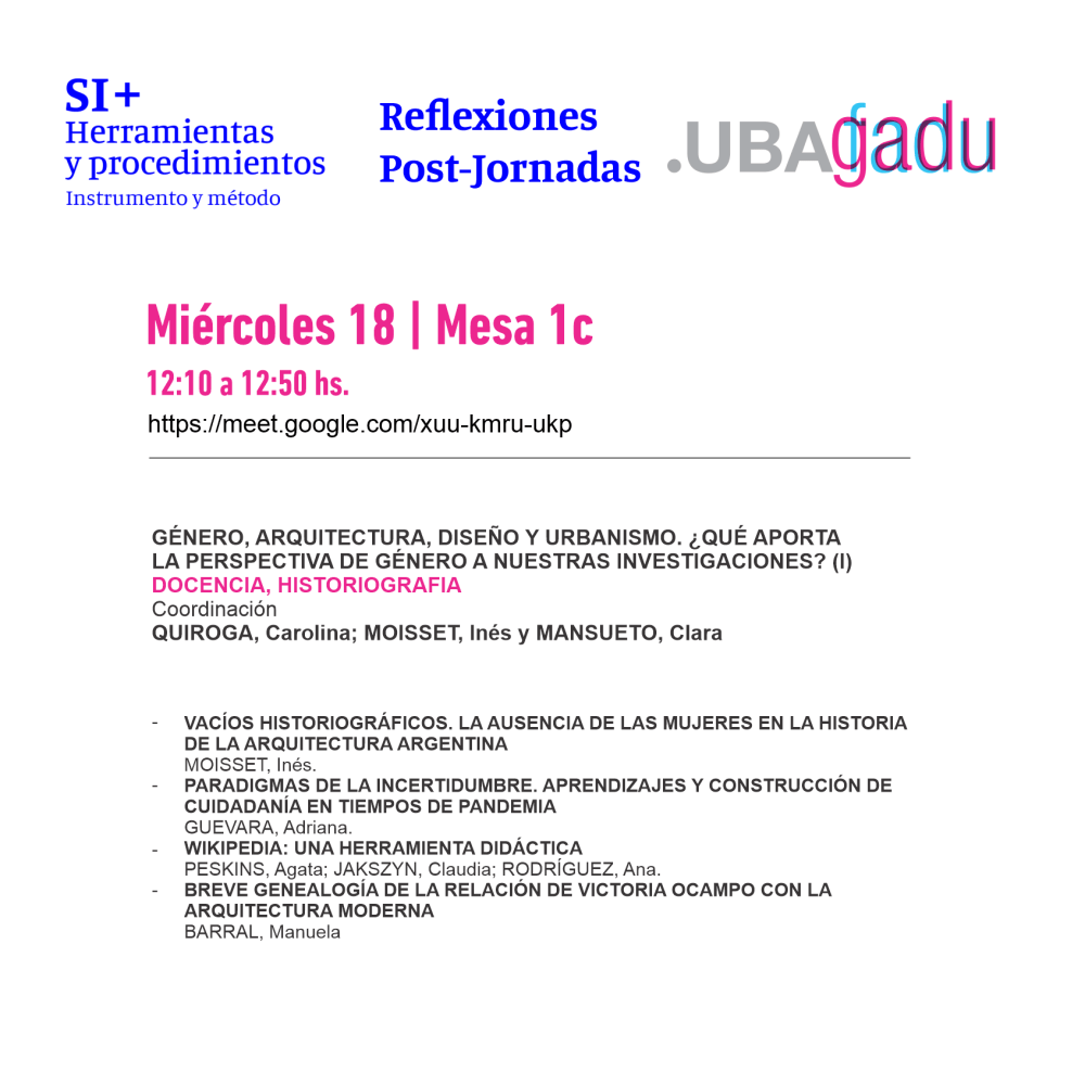 La sesión tiene la intención de intercambiar experiencias y discutir sobre las herramientas metodológicas que se están llevando a cabo en todos los niveles de la trayectoria de les investigadores, en formación y formades, para construir materiales teóricos y prácticos que fundamenten nuestros proyectos. Se trata de proponer en términos epistemológicos qué aporta la perspectiva de Género a la producción de conocimiento en Arquitectura, Diseño y Urbanismo.