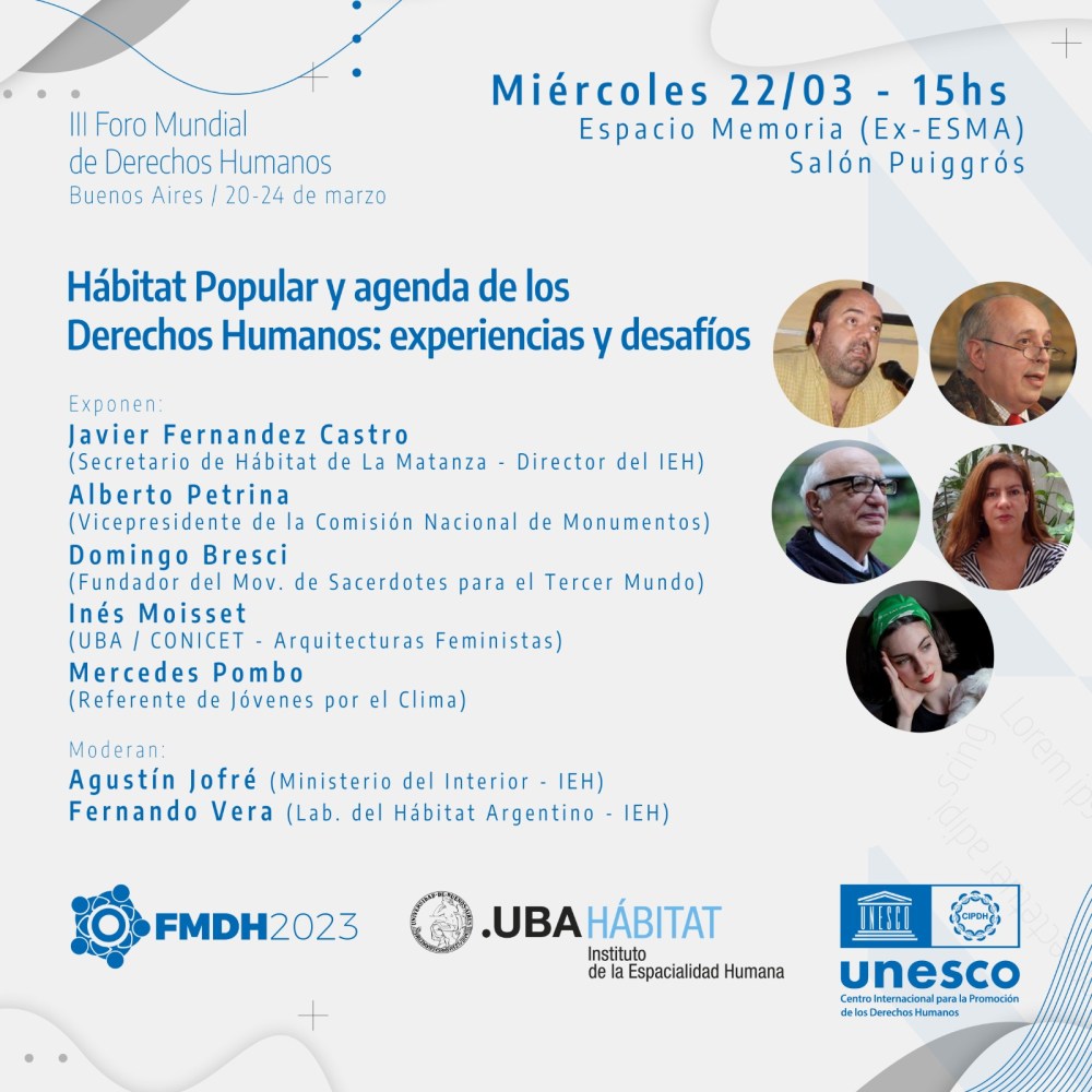 cursos y conferencias Hábitat popular y agenda de los derechos humanos: experiencias y desafíos Publicado por Inés Moisset el 16 marzo, 20234 abril, 2023 En el marco del III Foro Mundial de Derechos Humanos 2023 a realizarse entre el 20 y 24 de marzo. Abierto al público Compartir Haz clic para compartir en Facebook (Se abre en una ventana nueva) Facebook Haz clic para compartir en X (Se abre en una ventana nueva) X Haz clic para compartir en WhatsApp (Se abre en una ventana nueva) WhatsApp Haz clic para compartir en Pinterest (Se abre en una ventana nueva) Pinterest Haz clic para compartir en Tumblr (Se abre en una ventana nueva) Tumblr Me gusta Cargando... Relacionado