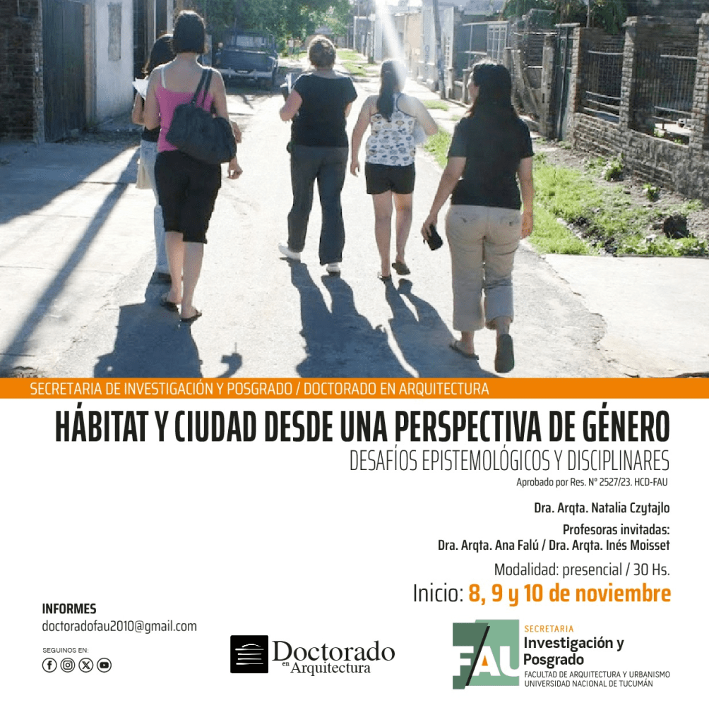 cursos y conferencias Hábitat y ciudad desde una perspectiva de género Publicado por Inés Moisset el 7 noviembre, 2023 Hábitat y ciudad desde una perspectiva de género. Desafíos epistemológicos y disciplinares. Dra. Arq. Natalia Czytajlo Profesoras invitadas: Prof. Arq. Ana Falú y Dra. Arq. Inés Moisset Compartir Haz clic para compartir en Facebook (Se abre en una ventana nueva) Facebook Haz clic para compartir en X (Se abre en una ventana nueva) X Haz clic para compartir en WhatsApp (Se abre en una ventana nueva) WhatsApp Haz clic para compartir en Pinterest (Se abre en una ventana nueva) Pinterest Haz clic para compartir en Tumblr (Se abre en una ventana nueva) Tumblr Me gusta Cargando... Relacionado